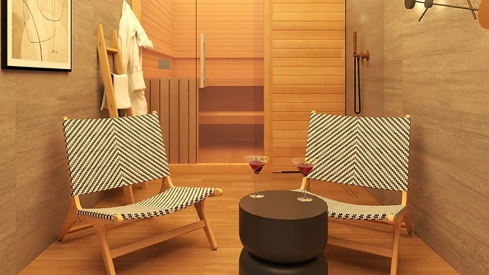 Ce conteneur sauna de 15 m² est une solution autonome, livrée prête à l’emploi, associant un sauna sec et un espace détente avec douche. Son design industriel élégant et ses grandes portes d’entrée lui confèrent un look moderne et sophistiqué, idéal pour les espaces extérieurs, les jardins ou les espaces bien-être.